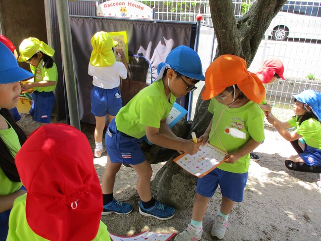 年長組、年少組がペアのお友達と一緒にお散歩ビンゴをしました。