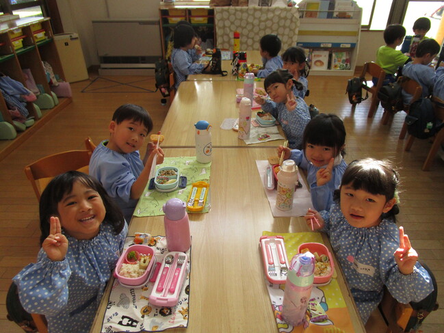 お弁当は、すみれ、もも好きなクラスで食べました。